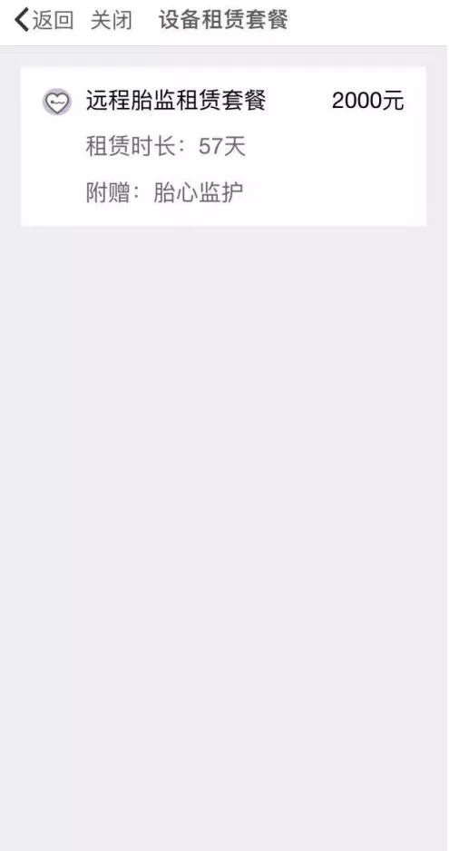 2. 天使医生APP【医院】栏点击【设备租赁】,选择租赁期限,付费租赁超声胎儿监护仪(请到????领取设备)。